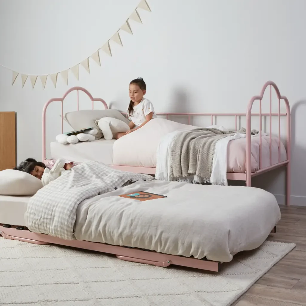 Pair this design with a daybed, and you’ve got a flexible setup that looks like a chic sofa during the day and comfortably sleeps three at night. Throw in some large cushions and a soft blanket to make it both functional and cozy.
