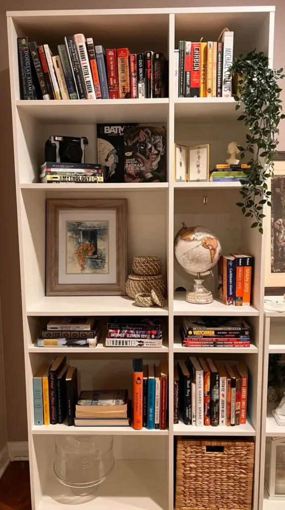 A bookshelf becomes meaningful when it reflects real experiences. Personal items bring emotional warmth that store-bought decor cannot replace. Travel souvenirs, framed memories, and small keepsakes quietly tell stories about who lives in the space.