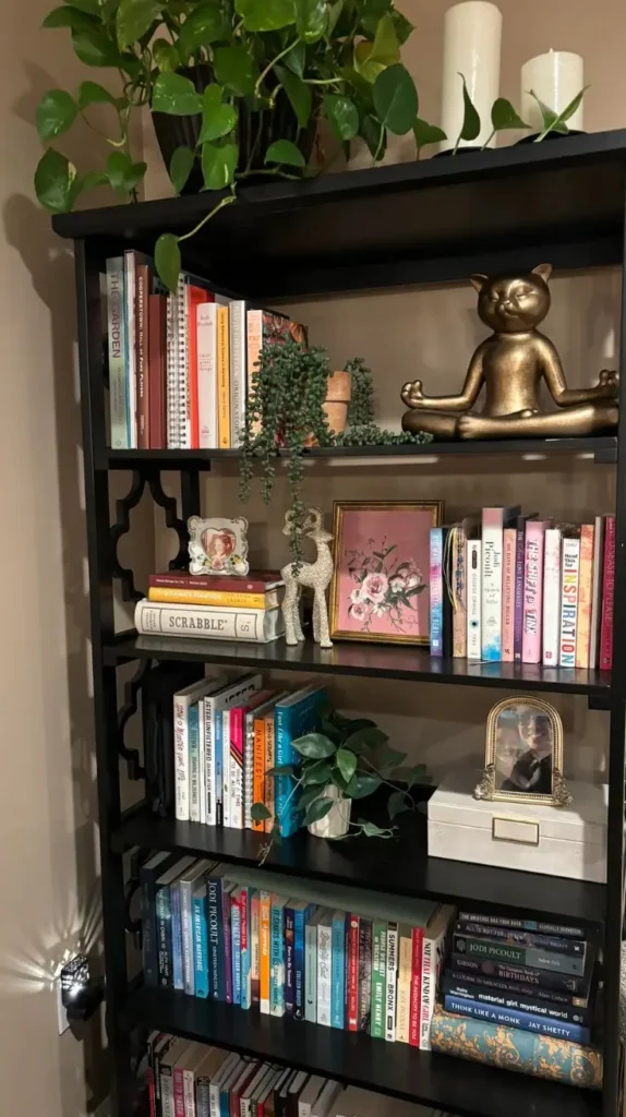 Spacing matters just as much as placement. Leaving small gaps between groupings gives the shelf room to breathe and keeps it from feeling overwhelming. A balanced layout also adapts easily over time. When new books arrive, they slide in naturally without disturbing the entire design. This approach creates a bookshelf that feels calm, lived-in, and quietly stylish.