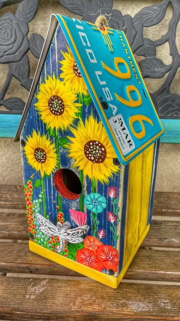This birdhouse painting idea works beautifully in spaces filled with plants, as it feels like an extension of nature rather than a separate object. It doesn’t just decorate the space; it becomes part of it, quietly enhancing the beauty around it.