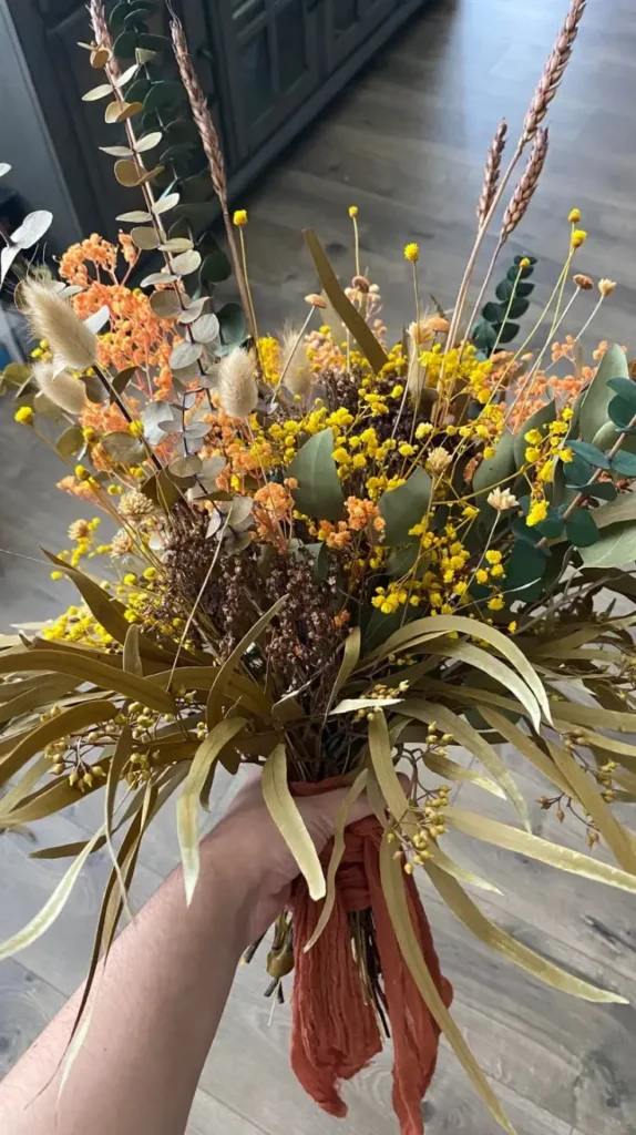 Fresh flowers are lovely, but dried blooms are fall’s natural crown. Pampas grass, wheat stalks, bunny tails, and dried eucalyptus add elegance and texture. Arrange them in ceramic vases, mason jars, or even hollowed out pumpkins. These arrangements are low maintenance and last the entire season.