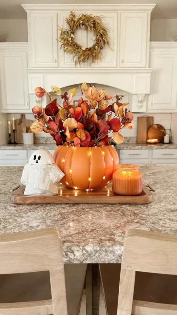 Use a few large ones as anchors and fill in the gaps with smaller decorative pumpkins or gourds. You can even carve or paint them for a custom look. While pumpkins are iconic, blending them with other elements keeps the space from feeling too themed or overwhelming. It’s all about the art of subtle celebration.
