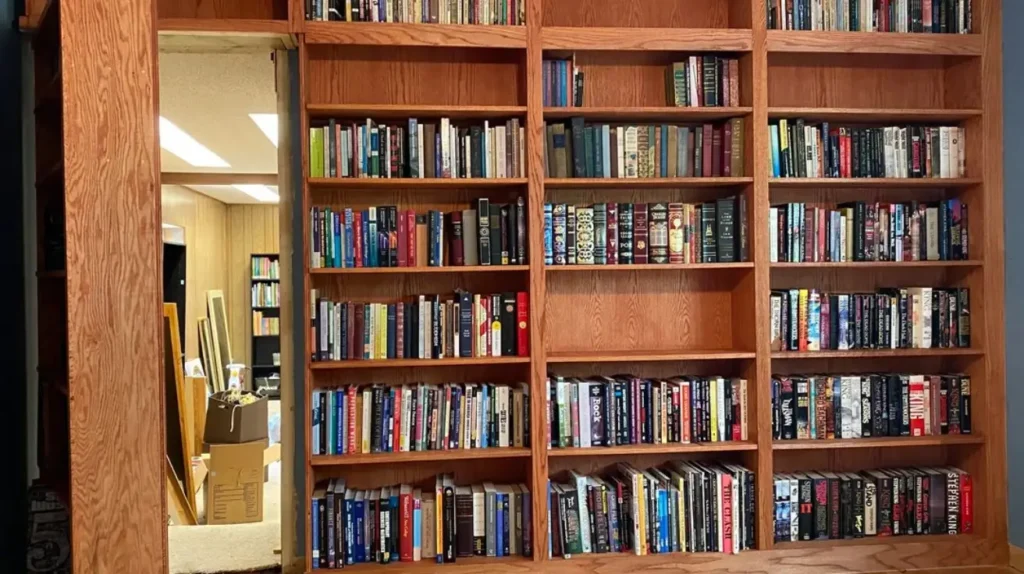 Perhaps the most iconic hidden door design is the bookshelf that doubles as an entrance. This type of secret room instantly evokes the feeling of stepping into a secret world. From the outside, it appears to be a fully functional bookshelf, but with a gentle push, it swings open to reveal a hidden room.