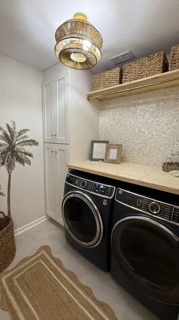Even a functional laundry area benefits from warmth and personality. Small decorative touches can transform the atmosphere without taking up valuable space. A compact plant on a shelf, a framed print on the wall, or a woven basket for supplies adds texture and softness to the room. These details make the space feel connected to the rest of the home rather than isolated.