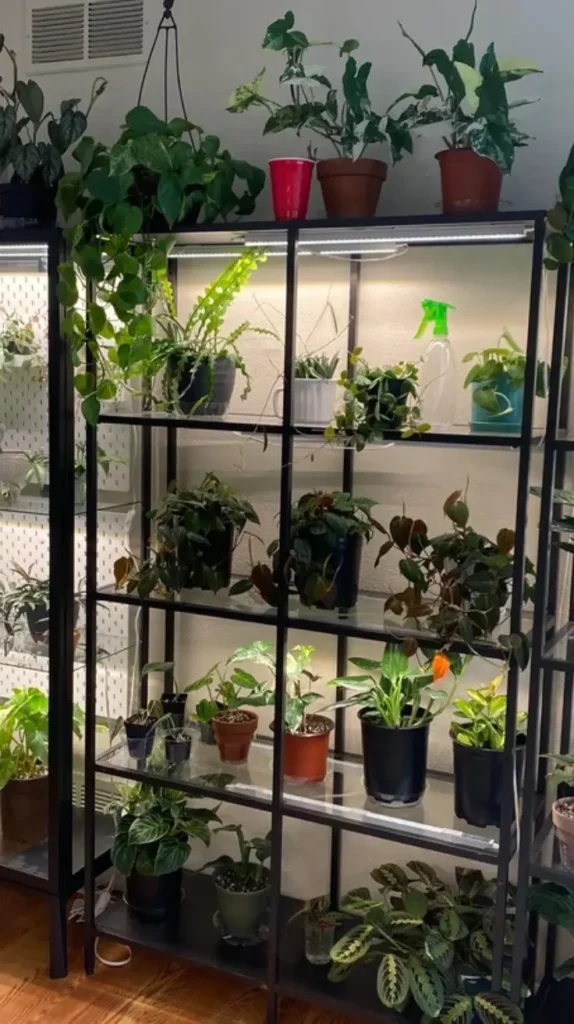 Include a comfy chair or bench where you can relax among your plants. A small humidifier helps maintain plant health. This nature-inspired idea creates a peaceful retreat, filled with fresh air and positive energy, perfect for unwinding or meditating.