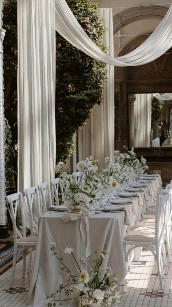 Not every bride wants extravagance. Minimalist aisle decorations focus on simplicity and elegance. Think clean white chairs, a simple greenery garland, or a soft aisle runner. Minimalist décor allows the couple’s love to be the centerpiece while still creating a polished, refined look.