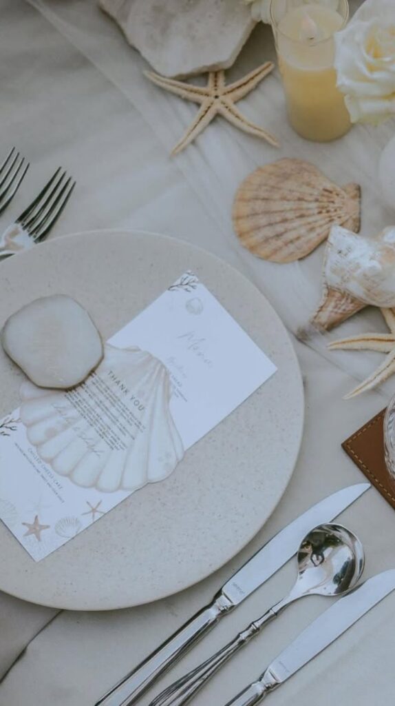Walking barefoot down a sandy aisle sprinkled with seashells is a dream come true for beach brides. The décor blends seamlessly with the environment while still feeling elegant and intentional. A seashell and sand aisle captures the essence of love by the sea, making it a perfect setting for couples who share a passion for the ocean.