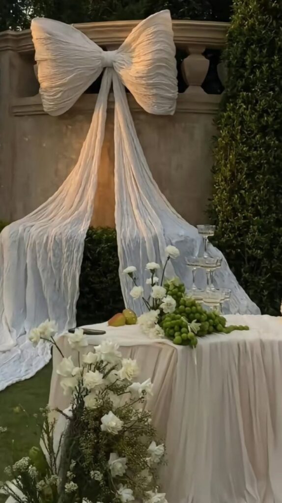 For a whimsical and ethereal feel, fabrics and ribbons are a breathtaking choice. Flowing chiffon, silk, or tulle draped along the chairs or benches lining the aisle adds movement and softness. Delicate fabrics tied with ribbons create a light, airy vibe that dances in the breeze at outdoor ceremonies.