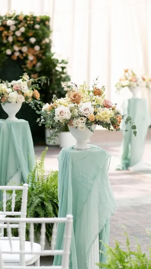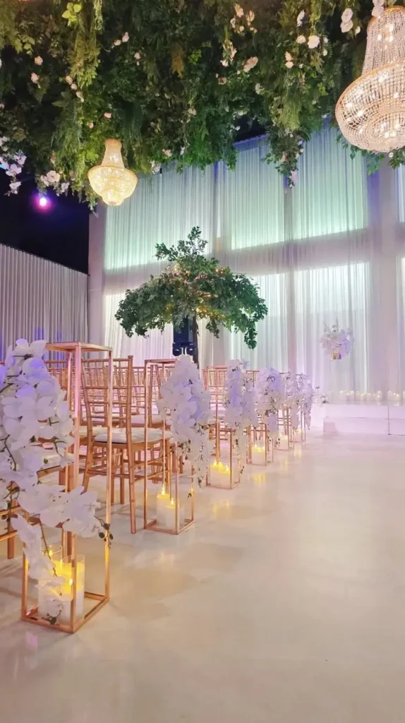 Sometimes simplicity speaks louder than extravagance. Greenery garlands draped along the sides of the aisle offer a natural and refreshing look. Eucalyptus, ivy, or ferns can be woven into long garlands that frame the walkway, bringing an organic touch to the décor.